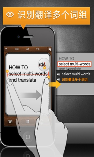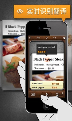 无须拍照,无须等待,只要在相机取景框中对焦生词,识别及翻译结果立等可得。
