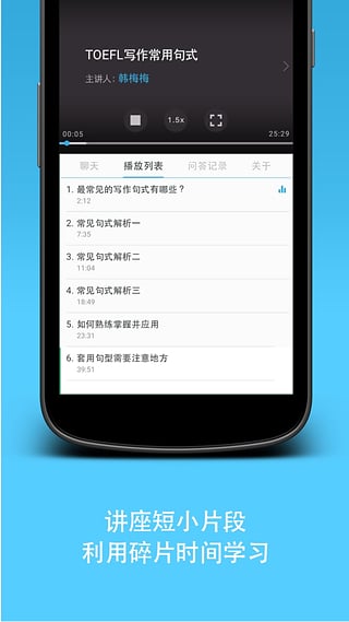 小板凳是一个全新的在线讲座和问答互动平台。用户可在讲座中通过提问功能直接向主讲人提出问题并由主讲人直播回答。历史讲座包含播放列表和问答记录功能,让用户更好地收听经过整理总结的讲座以及主讲人的问题回复。