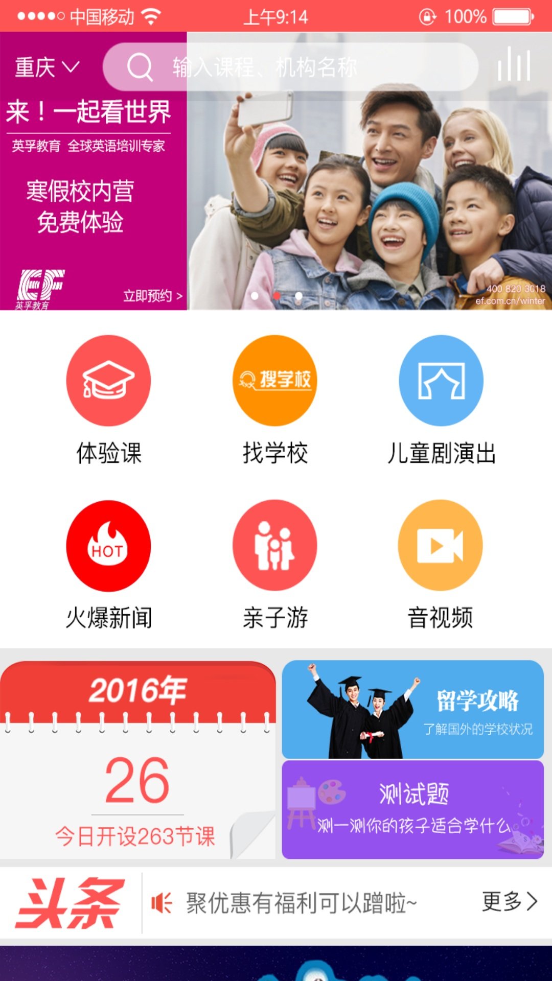 整合本地各培训机构的免费体验课程提供给消费者随时,随地,随心的体验渠道以及提供消费者各培训机构的教育培训优惠和教育培训资讯信息的平台。