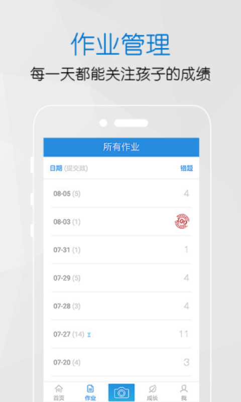 2、拍照纠错:每天拿手机轻轻一拍,上传所有作业,1小时内即有老师完成批改。