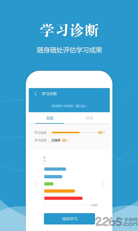 2、学习诊断:可随时查看学习诊断结果,各课程、各单元平均成绩任你看。简化细节,轻松了解学习状态。