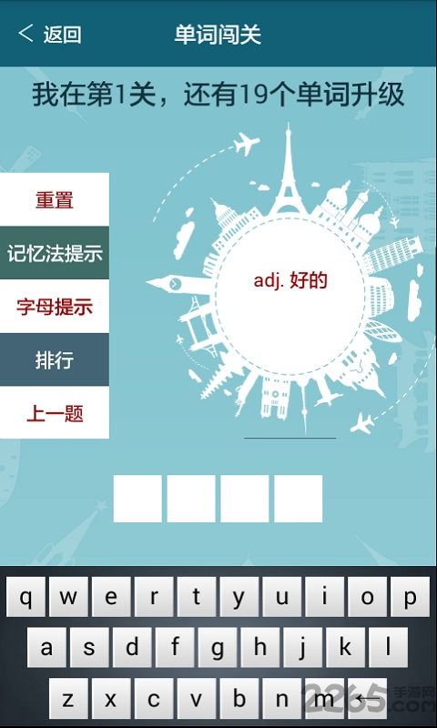 《奇速记单词app》游戏总共有100关,每关记单词的任务是15个。游戏以中国奇速英语国际教育研究院独家精品读物《奇速英语24个故事串记中学3500词汇》为载体,
