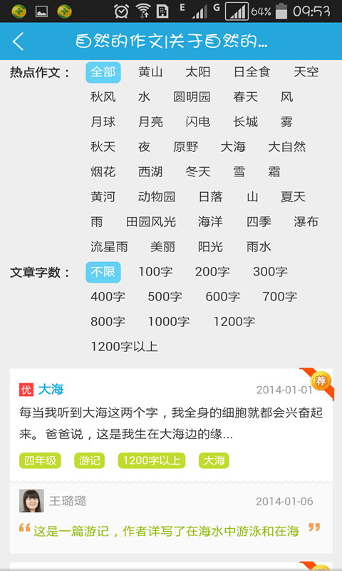 分类详细、全面,涵盖从小学到高中所有年级,包括单元同步作文,满分作文等优秀范文。