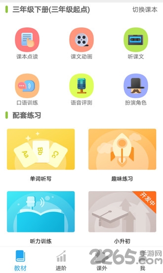 与当前主流教材同步,包含课本点读、课文动画、听课文、口语训练、语音评测、扮演角色等模块,轻松完成教材主题学习;并配套单词听写、趣味练习、听力训练、小升初专项测试等内容给学生在家里练习巩固。