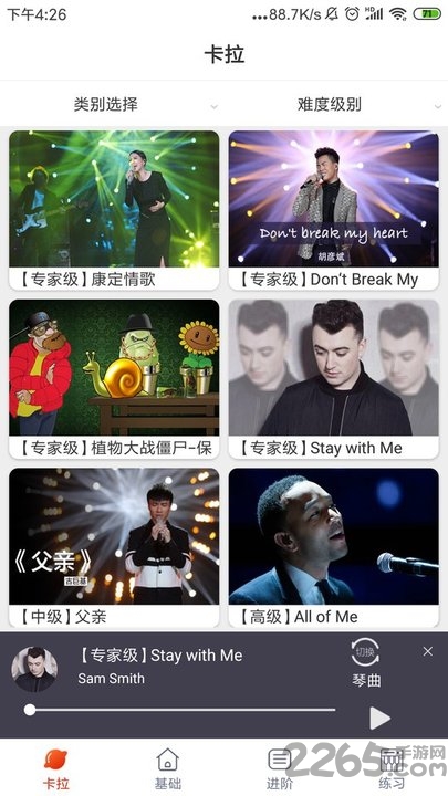 用户生成的巨大歌曲库。大量钢琴曲在线听学练。