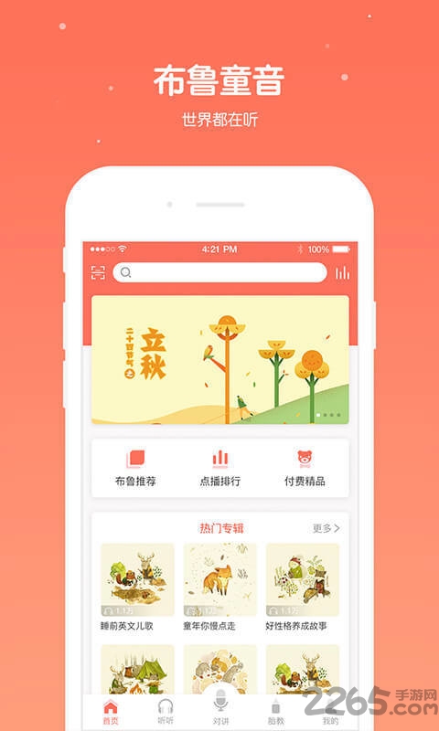 布鲁童音是一款专为儿童而打造的故事电台,该电台精选各种优质的儿童故事,拉近孩子与父母之间的距离.让孩子在听故事的同时学习各种知识与道理.感兴趣的朋友可以来下载.