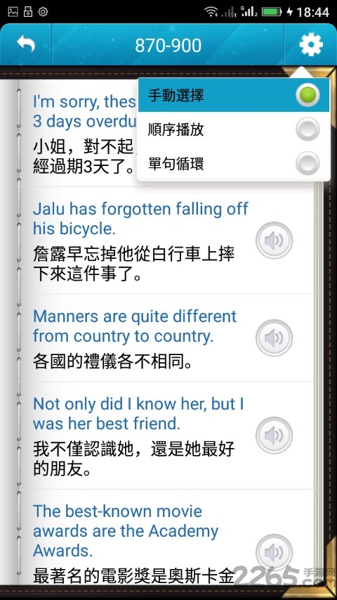 基础英语900句手机版界面直观,操作简便;支持MP3朗读功能。 程序精选了各种情景下的最常用的英语口语900句。 软件可以设置的 手动播放 、 顺序播放 、 单句循环 。 软件操作简便、界面直观、内容丰富,是您学习英语口语的绝佳好帮手。