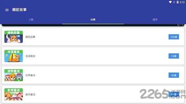 1、故事:睡前故事、成语寓言、世界童话、数学童话