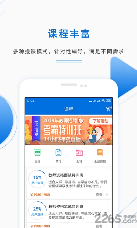 一站式解决教师资格证考试刷题、听课两大需求!拥有丰富的课程帮助老师们授课,还有模拟练习、高频数据以及科学评估系统帮助老师向上成长。