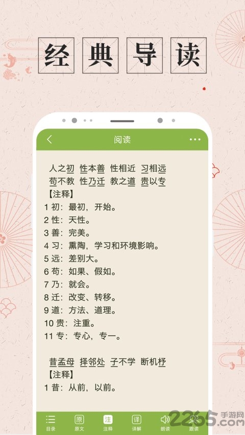 5、经典导读:精读书籍包括原文、注释、译解和朗读音频。看注释、读译文,轻松学古文。