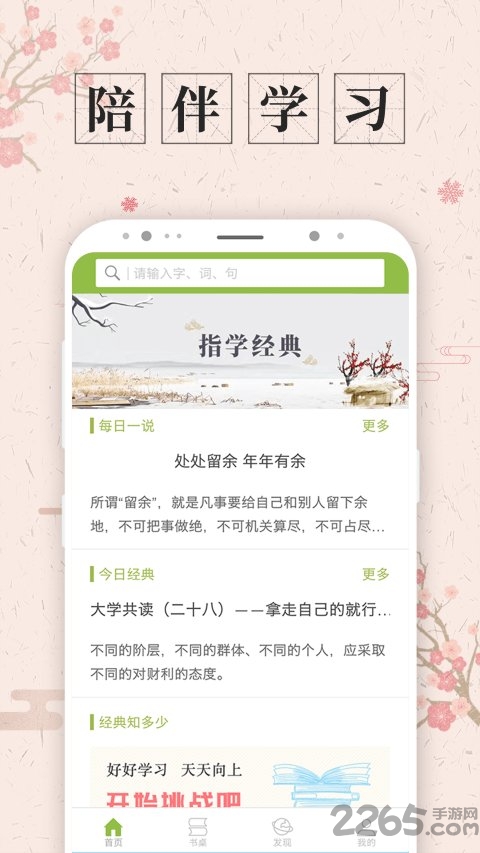2、陪伴学习:首页栏目每天陪伴您学习经典原文,了解中华文化。