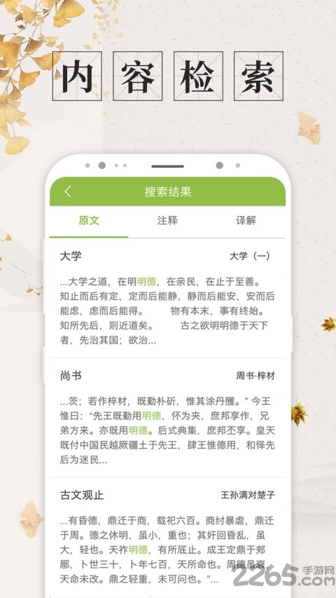 3、内容检索:检索书籍原文、注释和译文内容。支持使用字、词、句全文检索。