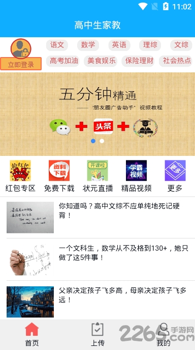 高中生家教是一个提供丰富学习技巧的应用,在这里有清华、北大的学长学姐!他们会分享高中高考学习经验,提供高中资讯,报考技巧,备考经验!还有文章一键自定义功能,在精品文章中加入你的推广信息!
