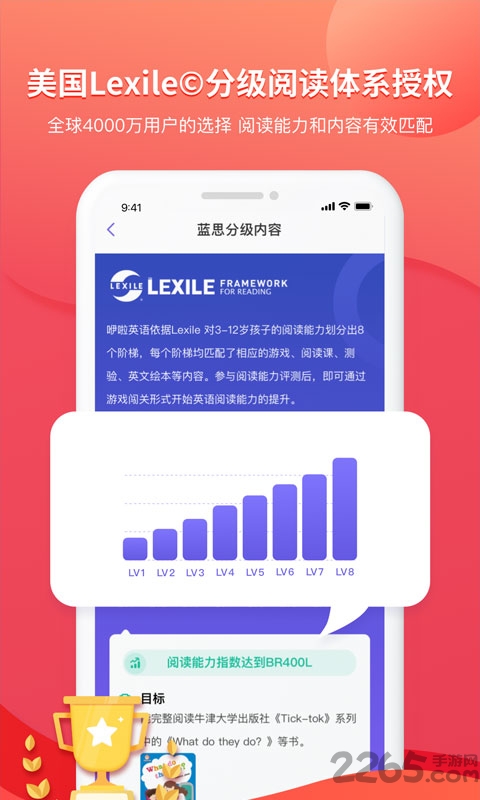 咿啦英语学习平台是为3-12岁儿童提供的英语分级阅读学习产品,提供包括英语分级阅读、人工智能教学辅导、语音评测、词汇练习、英语测验在内的英语学习服务.通过数字化互动阅读的方式,满足儿童英语分级阅读、趣味阅读、独立阅读、兴趣阅读、多学科多领域阅读的需求.