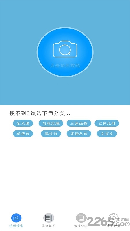 1、拍照搜题,自带的相机功能支持在任何地方一键拍照搜索题目;