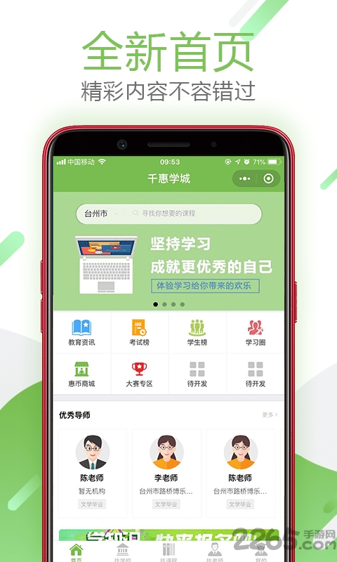 千惠学城软件是一款非常实用的在线培训平台,该平台教学内容包含从小学到大学的所有课程内容,采用新锐的互联网教育方式,各种丰富的课程视频任你选择,碎片化你的时间.感兴趣的朋友可以来下载.