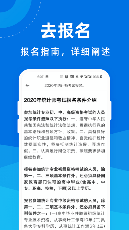 统计师宝典app是一款专为考统计师的朋友打造的学习软件,软件内拥有明确的报考信息,各种全新的考试政策一目了然,更有大量的练习题目供你练笔,绝对会在您的备考路上给你一大助力。