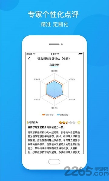 --实时了解宝宝心理发展水平,全面考察智能、情商、语言、行为、艺术五大维度以及环境对宝宝发展的影响因素;