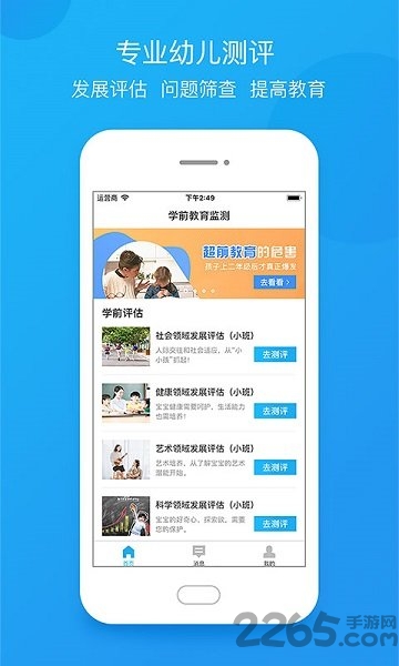 学前教育监测app是一款专注的学前教育测试的手机端软件,能够帮助用户直接对幼儿的心理发展进行测试,能够更好的掌握的孩子的心理成长的变化,能够家长更好的对孩子进行教育,有需要的用户赶紧来点击下载吧!