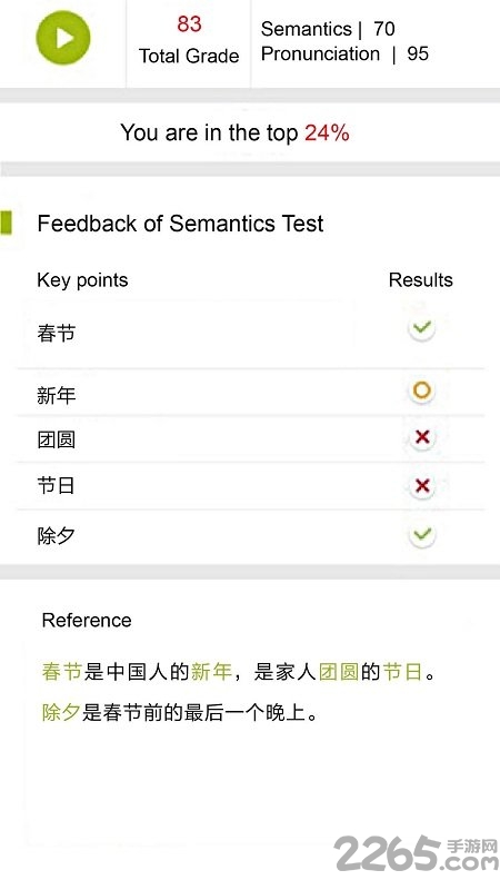 Aha Chinese是融合最新口语教学理念和尖端语音评估技术的、适配多终端的汉语口语教学与管理系统。这一系统由外研社联合外研讯飞倾力打造,基于科大讯飞国际领先的智能语音评测技术,配套外研社科学、专业的口语训练内容,旨在让汉语学习者随时随地练习汉语口语。