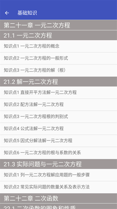 九年级数学帮app是专为九年级学生打造的学习软件,内容与课本是同步的,学生可以在上面进行课后复习,上面不仅有基础的知识,还有知识归纳,帮助你更好的理解数学知识,找到适合自己的解题思路,有需要的学生快来下载使用吧。