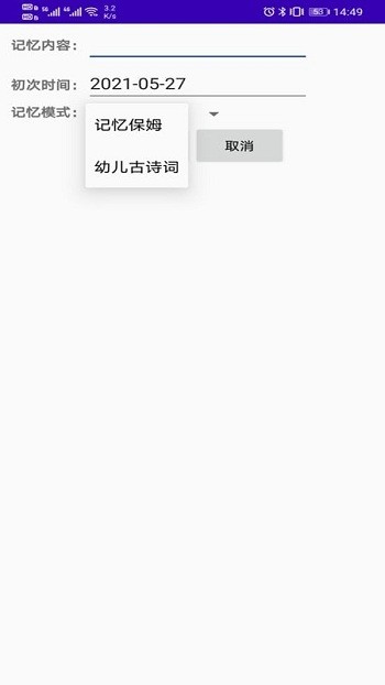 软件主要功能基于艾宾浩斯遗忘规律,经过几年的课题实验,3000余学生参与实验并从实验数据中分析出适合中小学生使用的记忆模式,是帮助你科学使用大脑、记忆一切信息的学习工具。用户通过输入不同时间记忆的内容,根据用户选择的记忆复习模式自动生成基于遗忘规律的复习任务清单,用户根据“今日复习任务”列表进行复习,同时可以反馈记忆状况。