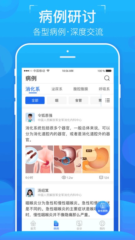 【病例研讨】支持通过手机端以视频、语音和图文的形式发布病例内容,进行开放式研讨;