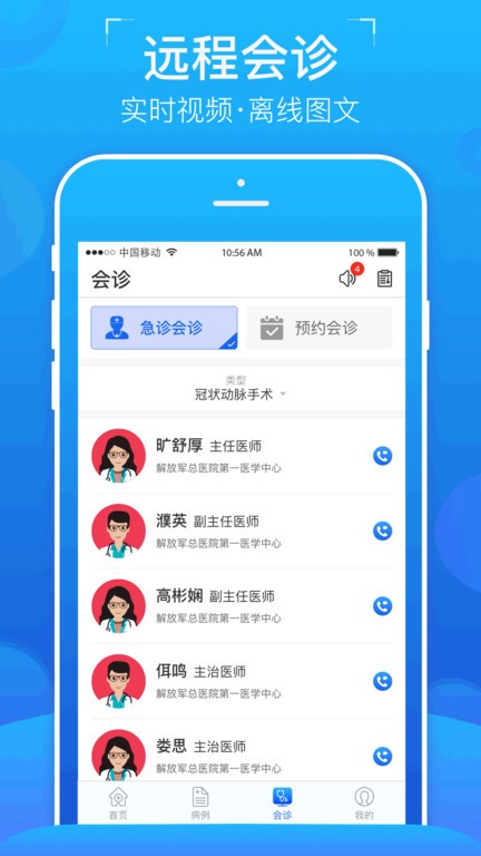 【远程会诊】支持视频会诊和图文会诊,1080P高清晰度;实现各个医疗机构之间一对一、一对多、多对多的远程医疗服务;