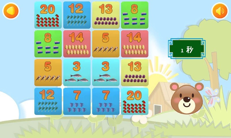 17.学水果-翻翻乐:翻开相同的两种水果卡片,进行消消乐游戏.