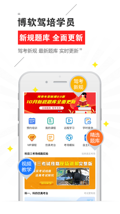 博软驾培学员app最新版是一款专门用来学习驾考的软件,用户可以在平台上进行预约考试,自主学习各种相关知识,丰富的题库资源任你选择,为你的驾考打下坚实的基础,帮助你拿到驾照,有需要的快来下载吧!