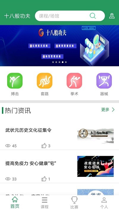 十八般功夫手机版是一款专门为大众打造的功夫教育app,软件通过线上或者视频授课的方式来传播武术精华来弘扬中华传统文化,是青少年们学习中国功夫了解中国功夫的一个优秀平台,为了打造良好的功夫输出环境而诞生的软件,对于需要了解或者学习中国功夫的用户会有很大帮助!