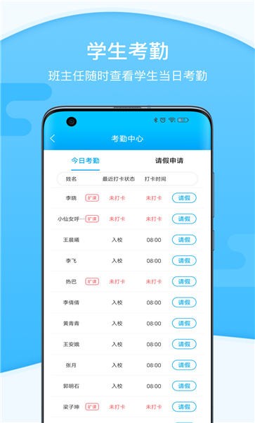 2、学生考勤:班主任随时查看学生当日考勤。