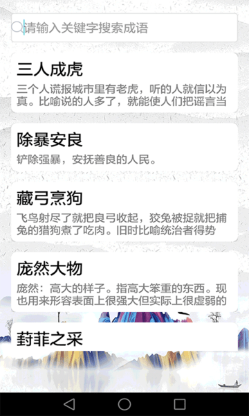 包括了几万个成语的详细解释、出处,不理解意思的成语可通过词典查询相关释义;