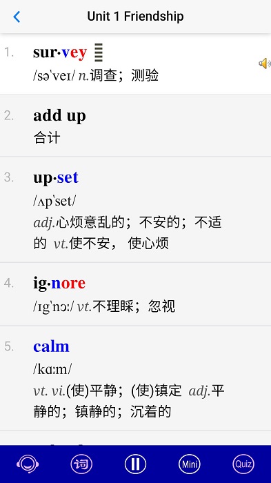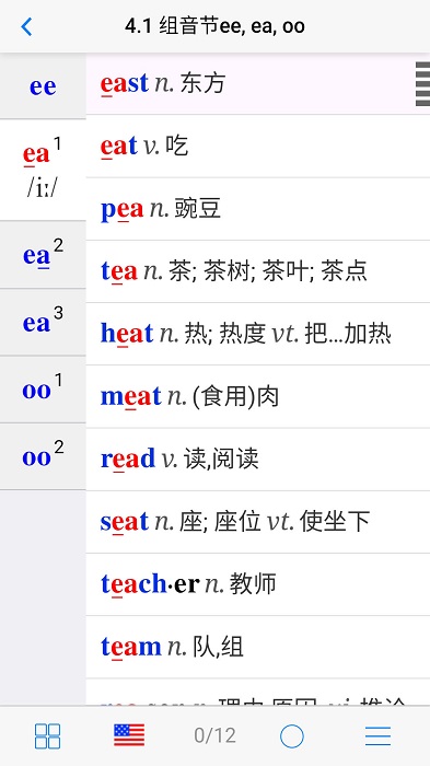 高中英语自然拼读软件是一个全新的自由学习英语的方法,通过着色和辅助发音标注,在全息自然拼法(也称《姚氏拼读法》)基础之上,对多音节词的音节类型和重读音节进行精准定义,多音节词派生词的词根词缀也一目了然,对单音节词组音节进行精准定义而实现多音自然辨析,并对每个单词的前缀、词根和后缀做了解译,结合高中英语主流教材单元词汇训练强化自然拼读而提升记忆效率。大大强化了词义记忆。多音节词通过音节化简和通过对重读音节的着色标注,大大简化的读音规则。