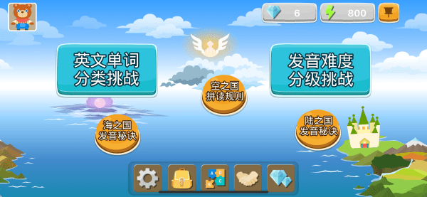 1.分陆海空21个国度,结合46个发音秘诀影片和30个拼字规则秘诀影片,按任务一步一步学会拼音熊音标!让你听到美语就能精准的标出它的拼音!