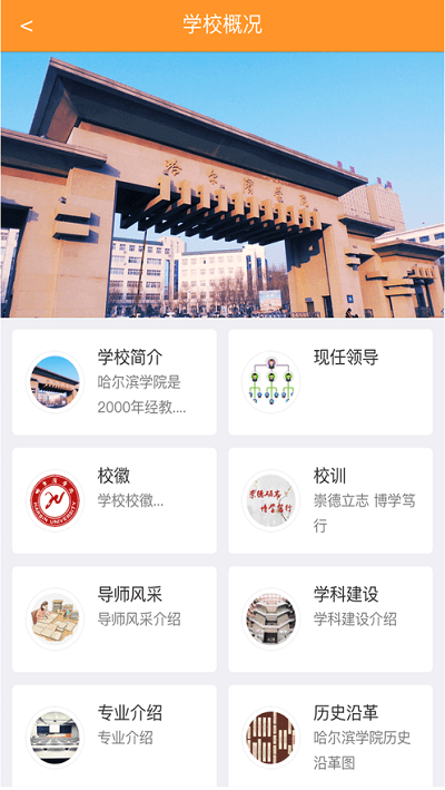 哈尔滨学院移动校园平台,为在校师生提供服务信息类内容,软件拥有丰富的功能及服务,全面了解学校概况、名师风采、专业等信息,帮助师生更好的校园工作生活学习,让你享受精彩校园生活。