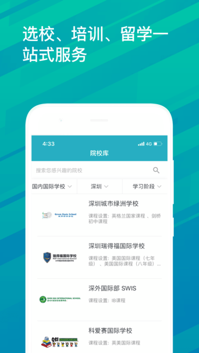 国际教育客户端是一款十分好用的软件,这个软件致力于帮助用户选择最好的国际教育服务,用户在这里可以查询到有关于外国留学以及国际学校的最新消息,让用户可以详细了解到所有的相关信息并且还会为用户提供建议。欢迎感兴趣的朋友前来下载使用。