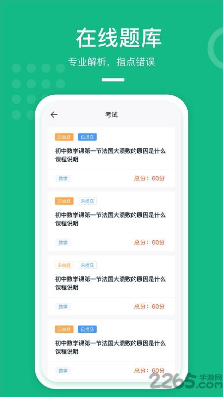 用于教育行业在线招生、模拟试题考试、在线教室、直播教学、点播教学使用,K12教育、职业教育、企业培训、IT技能培训、语言类培训、兴趣类培训学员使用的网校系统,软件支持学生和各企业在线教学、技能培训、招生等功能,手机端上更好的提供教学和招生资源,方便学生学习、企业扩大招生资源。