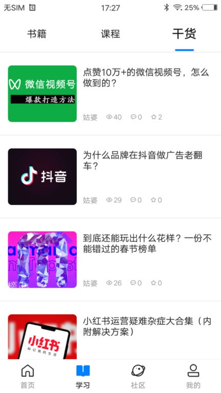 姑婆那些事儿app是一款可以学习运营和推广知识的平台,每天分享大量的干货文章,让你轻松了解各种专业知识,快速融入职场,提升自己的业绩.还能自由选择各种课程内容进行学习.