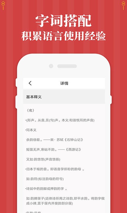 每个生字包含了详细的解释,如拼音、部首,组词,注释等,多角度学习生字