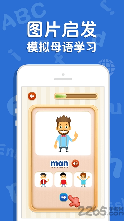 5、美式发音: 每个单词都有标准美式发音,设计了发音练习以及人工智能评分的功能,让孩子经过练习,可以发出标准的美式口音。只有会说,才算是真正掌握。