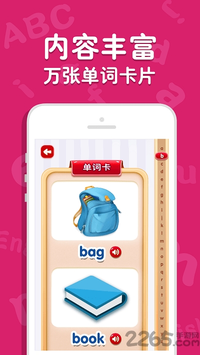 3、设计精美:APP由设计精美的操作界面以及美轮美奂的单词卡图片组成。充分考虑到儿童的特点,操作异常爽快,对孩子有很大的吸引力。