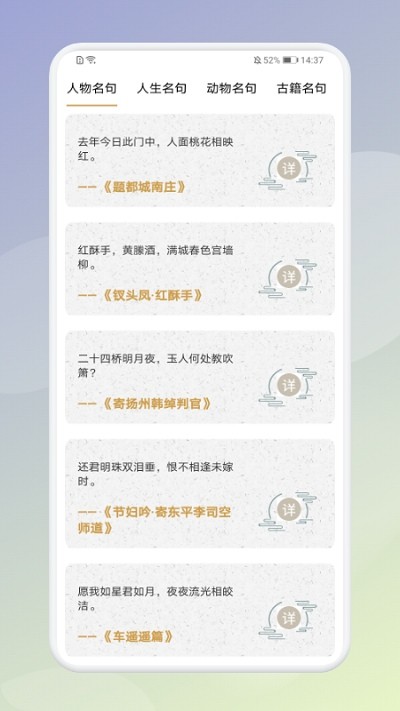 ·每日背诵一首古诗词,查询各类古诗词诗句,还可以根据诗人进行分类查找