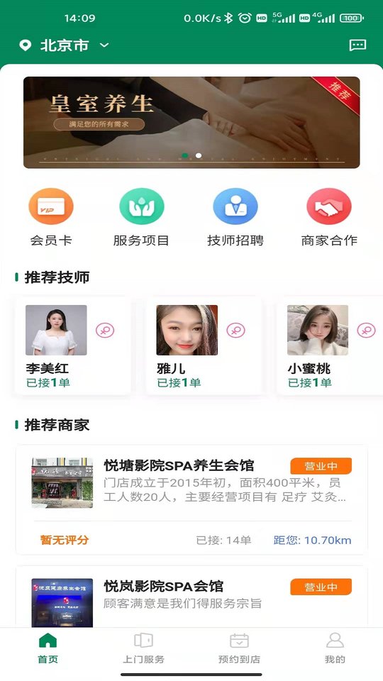 1.按摩服务一键预约,就算你不想要人来你的家里也是可以直接的在软件内预约一些店面服务.