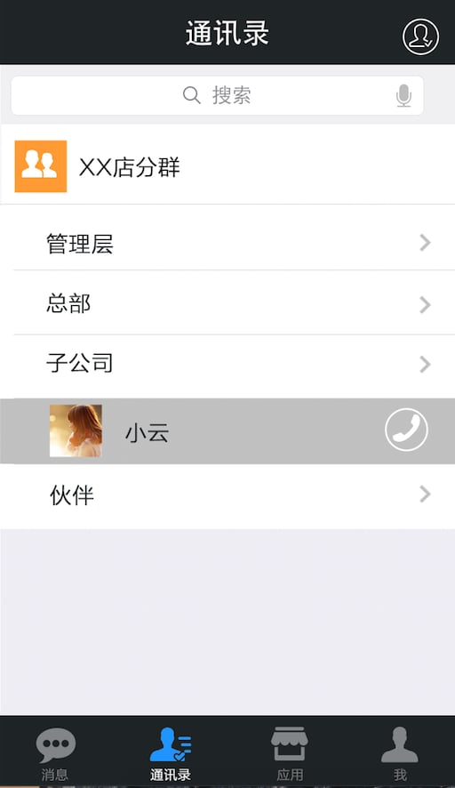 员工沟通方式借鉴微信的聊天方式,减少了用户使用新的通讯工具的学习成本.