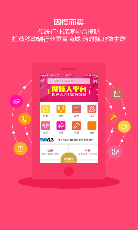 搜脉app是全国全面的移动采购、营销推广、商务社交软件,为企业转型移动互联网提供一站式解决方案!