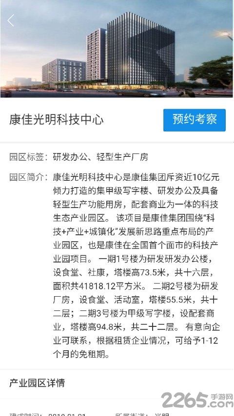 一键预约考察意向园区。企业通过设置区域、面积、功能用途等搜索要素,筛选出意向园区或厂房,可一键预约考察意向园区。