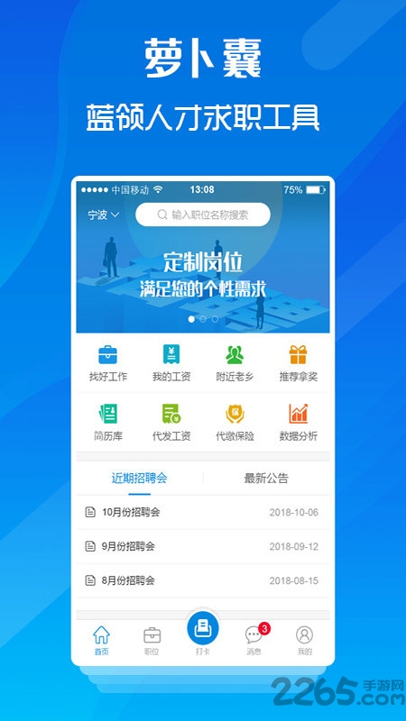 萝卜囊软件是一款主要招聘蓝领行业的炸平软件,帮助用户根据自己的不同需求来寻找工作合适的工作,而招聘者也可以在平台上发布自己的需求!操作便捷,并且用户在这里也可以找到自己的同乡伙伴!感兴趣的小伙伴快来也安卓网下载吧!