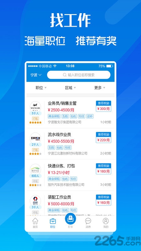 服务于蓝领城市生活的APP,可以找到附件好工作、视频面试、预支工资、有奖推荐以及找老乡聊天;
