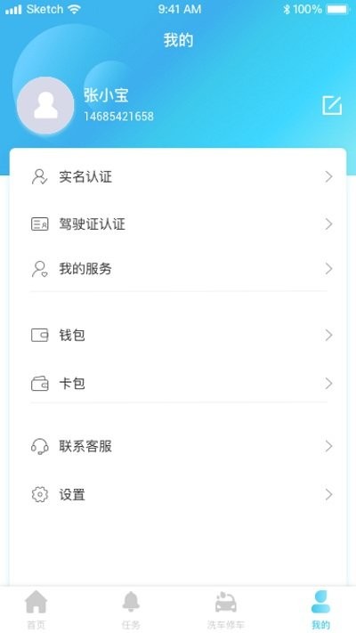 丰富的个人主页功能列表,我的主页中展示实名认证、驾驶证认证和钱包等管理功能